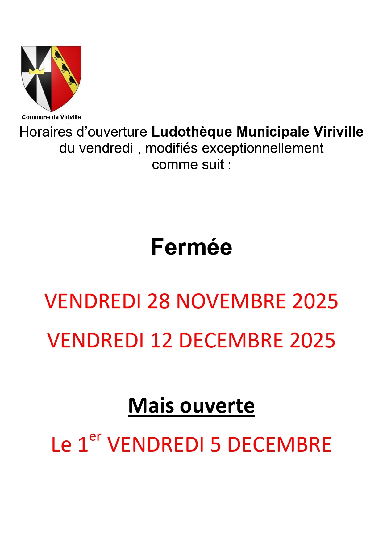 CHANGEMENTS HORAIRES A LA LUDOTHÈQUE