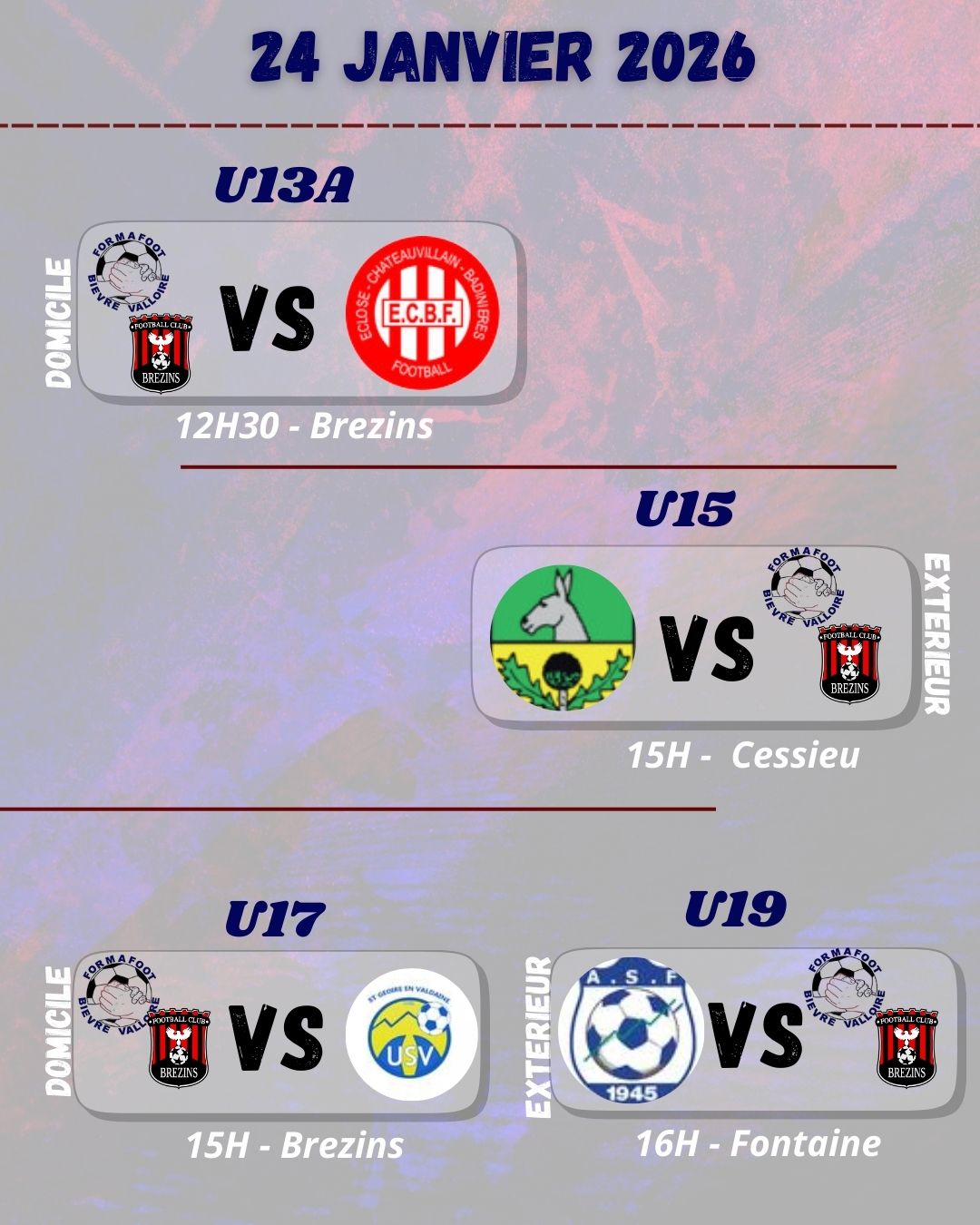 Match U19 à Fontaine à 16H contre Fontaine.