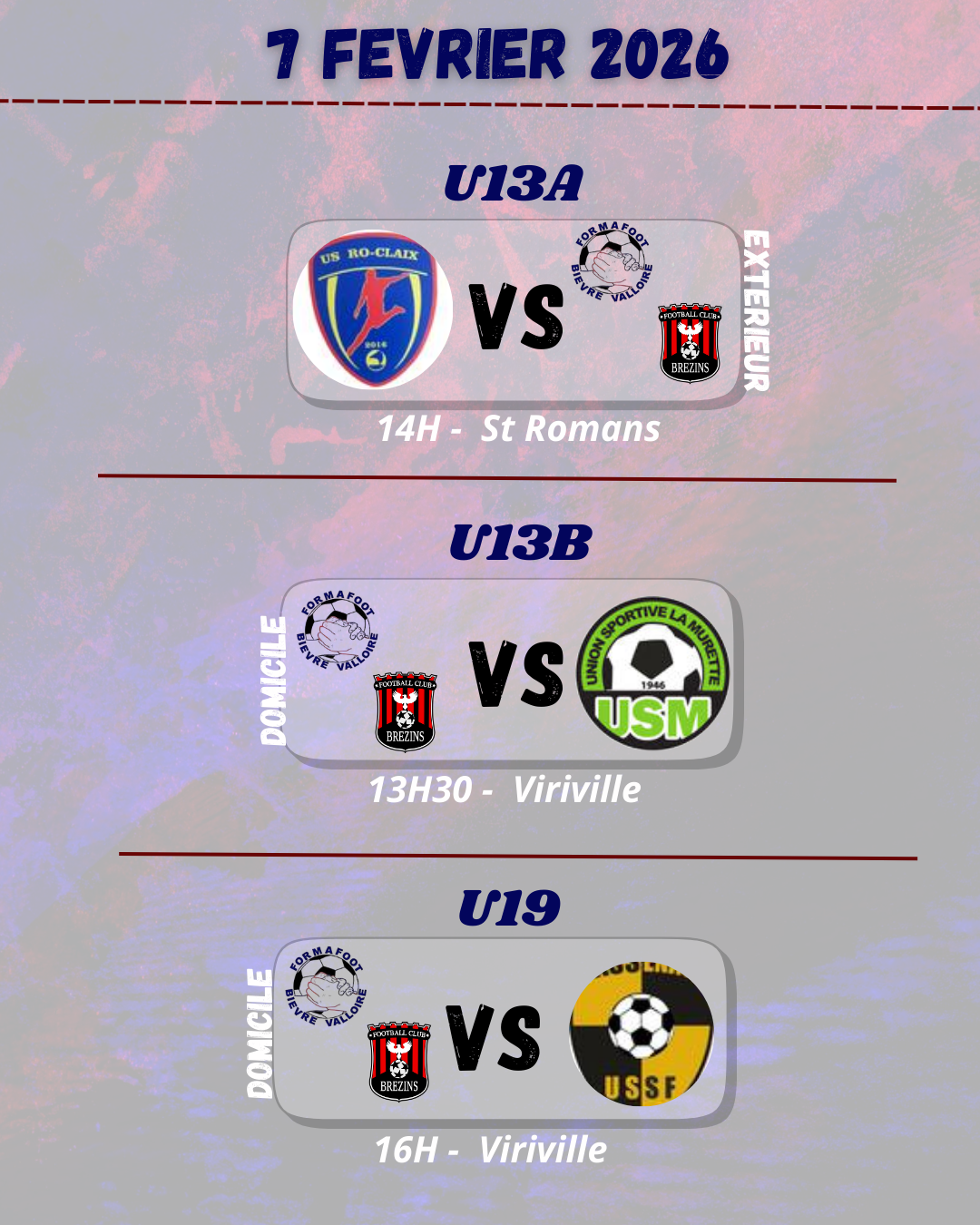 Match U13B à Viriville à 13H30 contre Murette 5.
